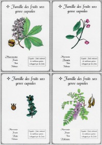 Le jeu de famille se présente sous la forme de sept feuilles format A4 à imprimer depuis les pages ".pdf " sur du papier cartonné et à découper. Vous obtiendrez ainsi 28 cartes à jouer représentant sept des principales familles de fruits.