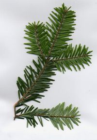 Aiguilles rigides; extrémité arrondie, parfois échancrée; aiguilles disposées sur deux rangs; dessus vert foncé luisant; dessous plus clair avec 2 lignes blanches. Cônes (=pives) dressés perdant leurs écailles sur l'arbre :