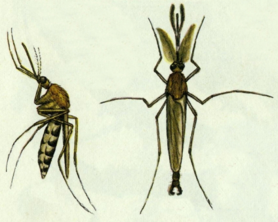 (à gauche, la femelle, à droite, le mâle, reconnaissable à ses antennes plumeuses)