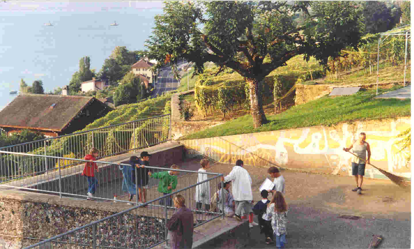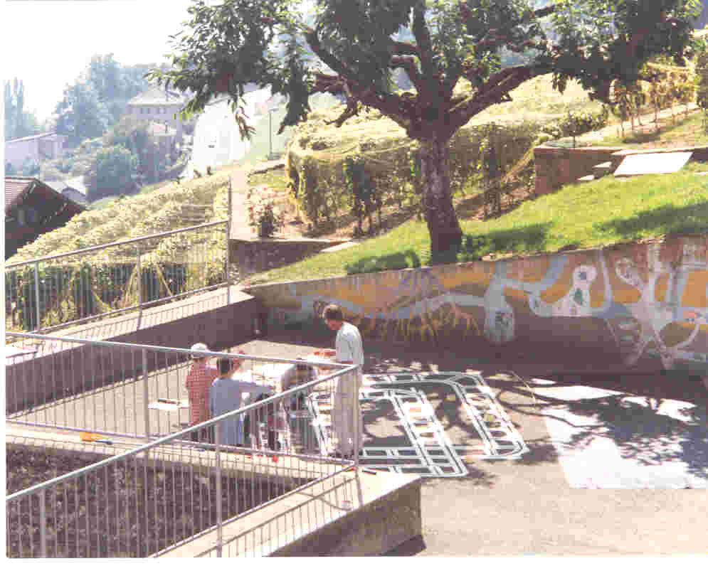 Il faisait beau lorsque nous avons repeint les jeux dans la cour avec Patrick Schürch et Paul Schaller.