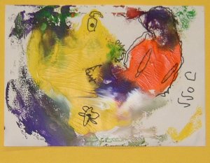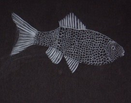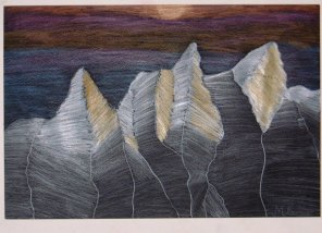 Voici un poisson dessiné par Maud et les Alpes dessinées par Matthieu