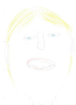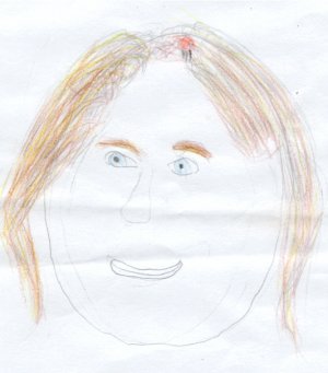 Elle a des yeux bleus, et des cheveux blonds ; c'est Aline . |