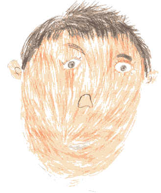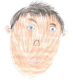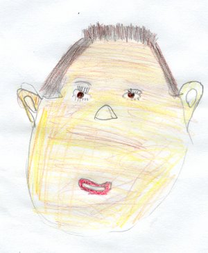 Il a des yeux bruns,et des cheveux bruns très courts ; c'est Benjamin . |